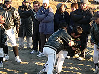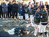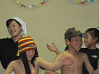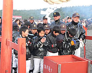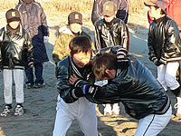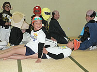 | 鬼だ〜!怖い〜! お面を取ったらもっと怖い〜! 練習試合後のほんの一時・・・ | ||