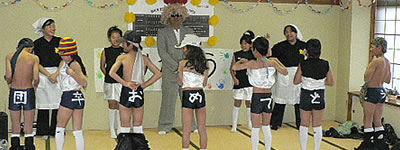1・2・3年生の劇「大きなかぶ」 鈴木コーチと礒部コーチはなんなんだろう??? |