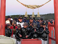 今年も恒例元旦マラソンのスタート!先導は礒部コーチ そして新キャプテン堪太 副キャプテン雄介 |