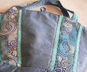 サリー生地で作ったプチバッグです。 裏地もつけてありますので丈夫です。内側には内ポケットがつけてありますので、携帯電話などを入れられます。 バッグ底面は楕円形で使いやすいデザインとなっています。