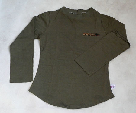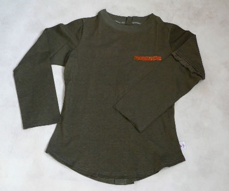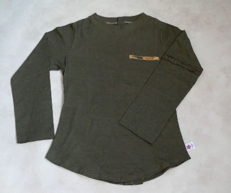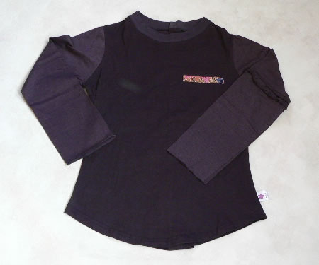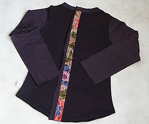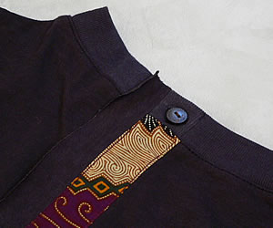 左胸と背中にバティックが付けてあります。袖口は裁断したままになっています。洗濯をするとクルクルっと丸まり、これがまたお